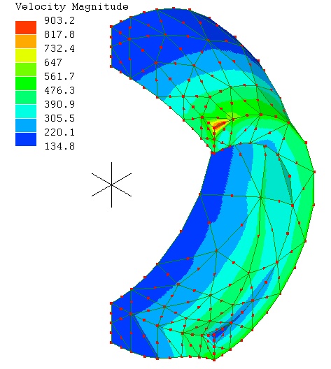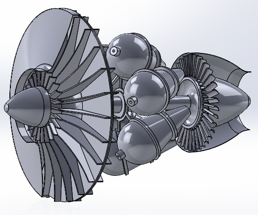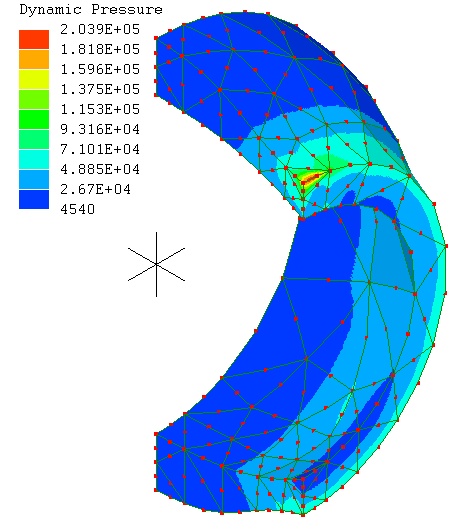 The calcul of the Jet engine describe result of end nozlle behind the gas turbine. The first picture is 3D model of jet engine, secund picture is result of velocity - units m/s and third picture describe the Dynamic Pressure - units Pa.